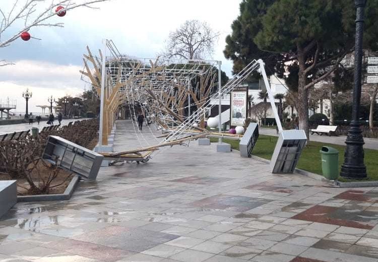 Зокрема, через негоду зруйнувалася святкова ілюмінація на набережній в місті.