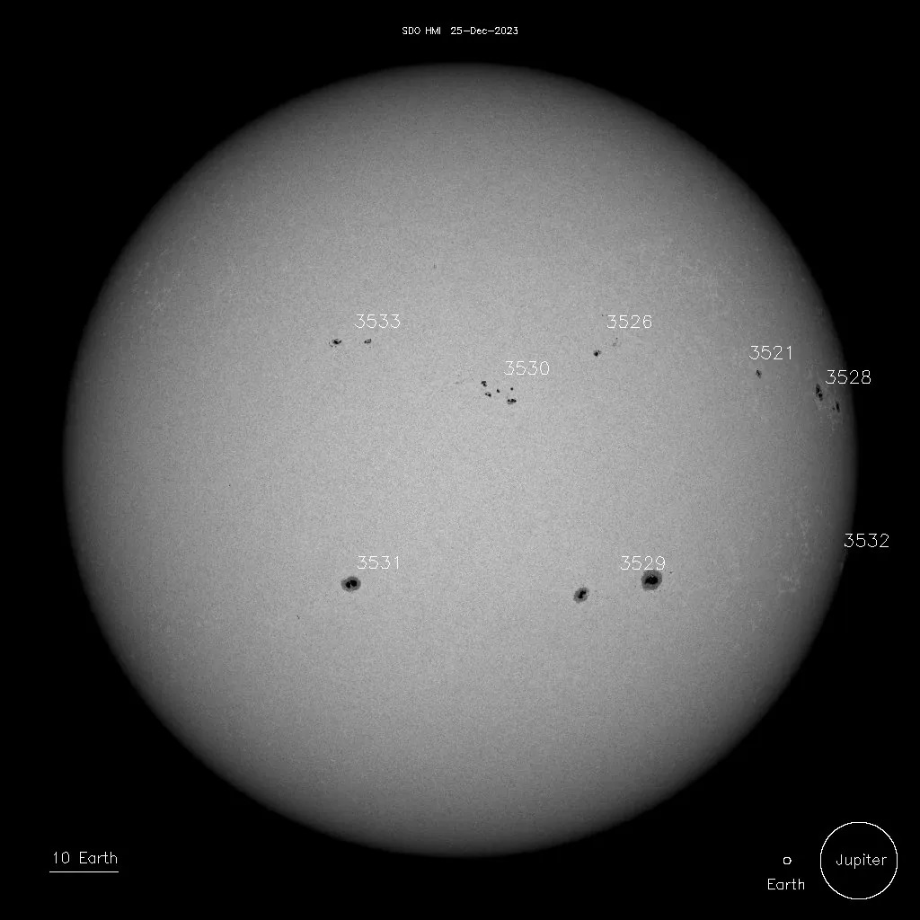 Повідомляється, що численні спалахи класу М зареєстровані 24 грудня. Прогнози вказують на потенційні геомагнітні обурення з ударом, що падає. Магнітна буря очікується наприкінці 27 грудня.
