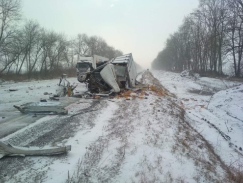 Вранці 13 лютого сталася страшна ДТП на 553 км траси Київ-Харків-Довжанський, біля с. Коробочкине в Чугуївському районі за участю двох фур і автомобіля "Газель".