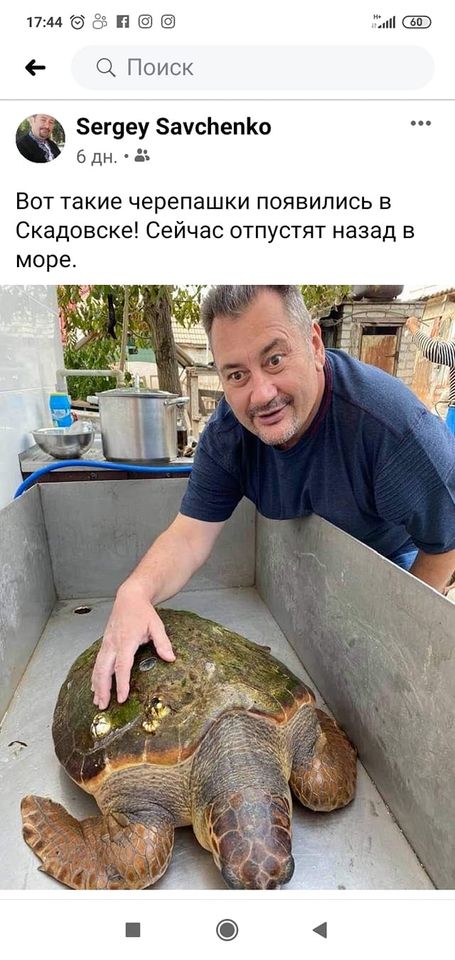 Користувачі соцмережі нагадали, що схожий випадок в Скадовську вже відбувався - близько тижня тому така ж величезна черепаха потрапляла в руки до людей.