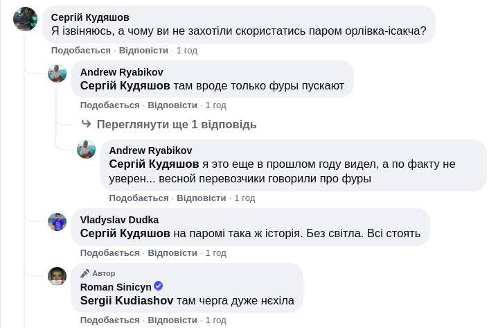 У коментарях користувачі додали, що на річковий поромній переправі Орловка - Ісакча на Дунаї з міжнародним пунктом пропуску, що з'єднує Україну і Румунію також вимкнулося світло і виникли проблеми - люди стояли в чергах годинами.