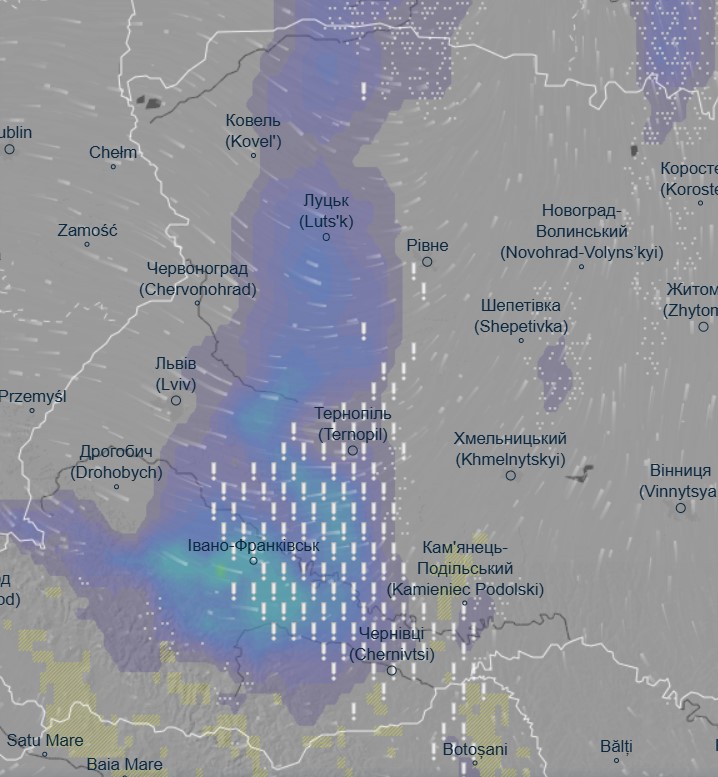 Вдень снігопади очікуються у Житомирській, Київській, Винницькій, Сумській, Харківській та Полтавській областях.