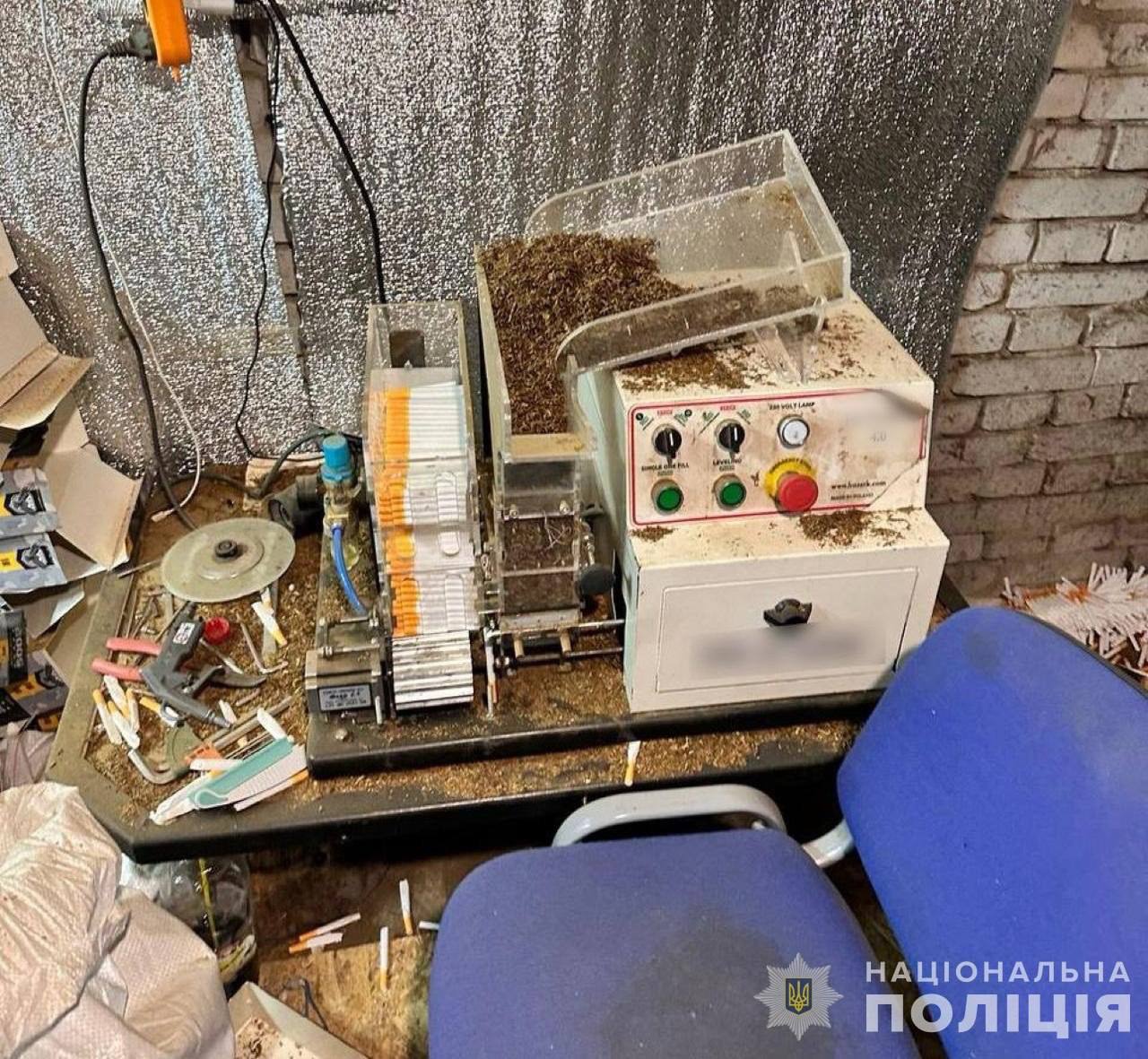 За результатами проведеного обшуку у прибудинковому приміщенні, де розміщувалося незаконне виробництво, правоохоронці вилучили 4 станки для набивки цигарок та пристрої для обгортання упаковок, картонно-пакувальні заготовки, понад 10 тис. пачок готової продукції, 150 кг тютюну, а також гільзи та фільтри для цигарок. Загальна вартість вилученого становить близько 2 млн грн.