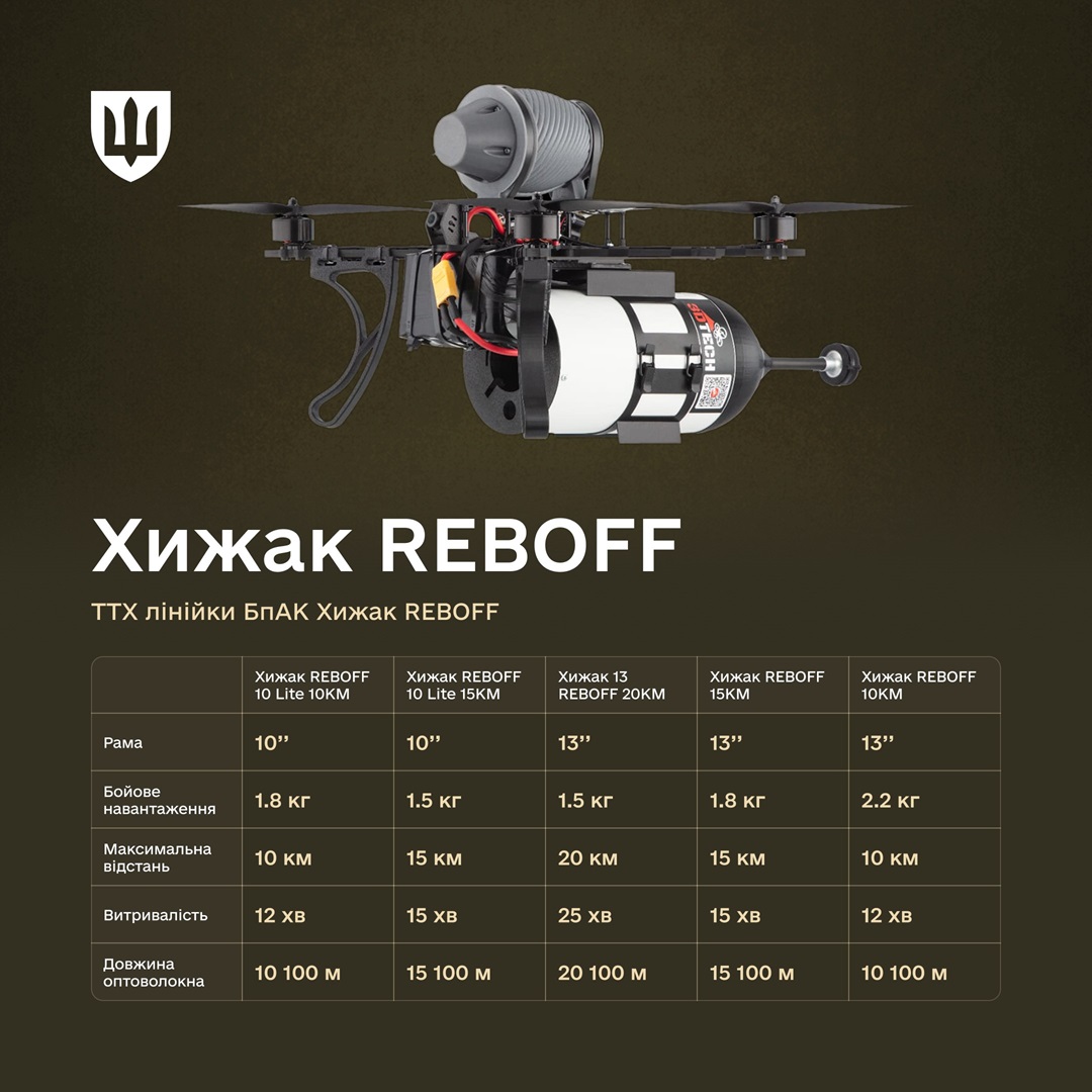 Міністерство оборони України кодифікувало лінійку оптоволоконних безпілотних авіаційних комплексів Хижак REBOFF українського виробництва.