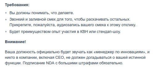 Претендент, який готовий сміятися з жартів начальника в робочих чатах або на нарадах, повинен у відповідь на вакансію надіслати запис свого сміху.
