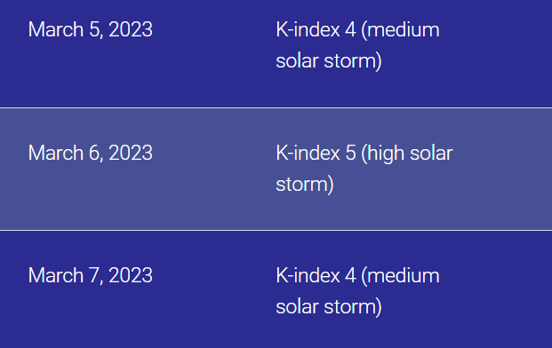 За цією інформацією, магнітна буря почнеться 5 березня. Прогнозують, що триватиме упродовж трьох днів, до 8 березня.
