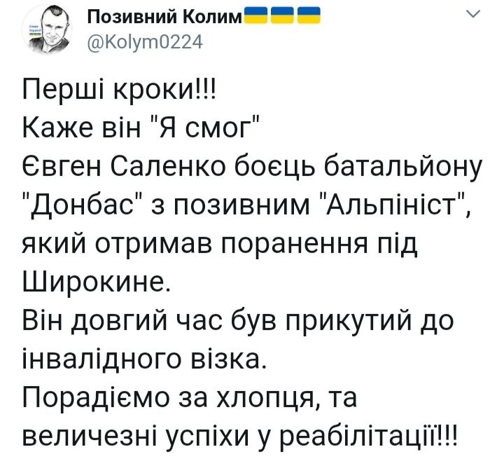 Користувачі мережі прийшли в повний захват від успіхів в реабілітації українського військового батальйону "Донбас" з позивним "Альпініст" Євгена Саленка, який отримав тяжке поранення під Широкиним.