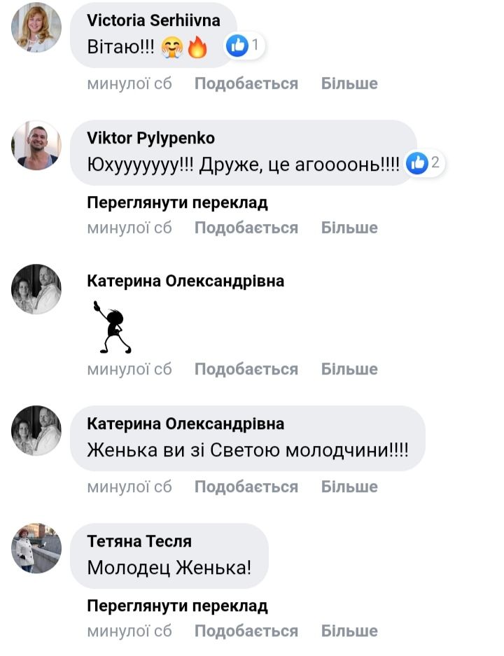 Своїми емоціями вони діляться в соцмережі під постом Євгенія на його Facebook-сторінці.
