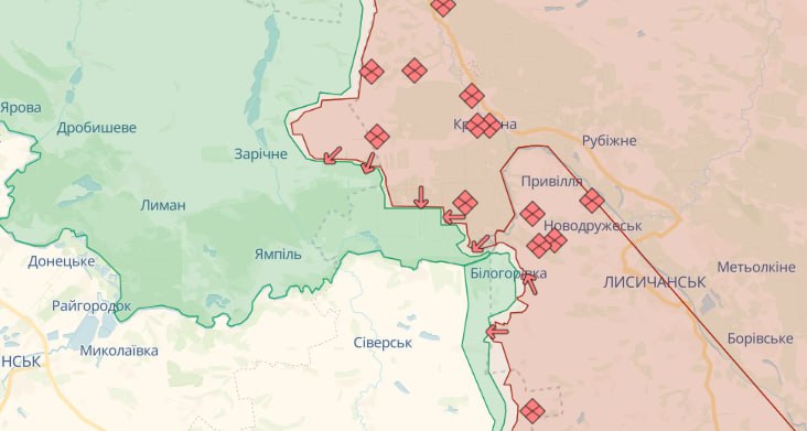 На Лиманському напрямку противник завдав авіаційних ударів в районах Чернещинлї Харківської області, Білогорівки Луганської області, Спірного та Веселого Донецької області. Артилерійських обстрілів противника зазнали понад 10 населених пунктів.
