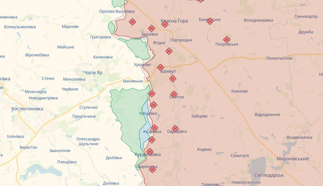 На Бахмутському напрямку ворог завдав авіаційних ударів в районах Богданівки, Кліщіївки, Білої Гори та інших населених пунктів. Артилерійських обстрілів противника зазнали понад 15 населених пунктів.