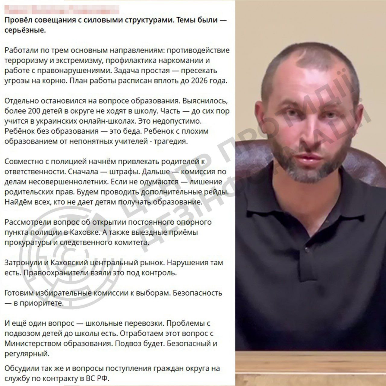 Він закликав окупаційну "поліцію" притягати таких батьків до відповідальності, штрафувати та позбавляти батьківських прав.