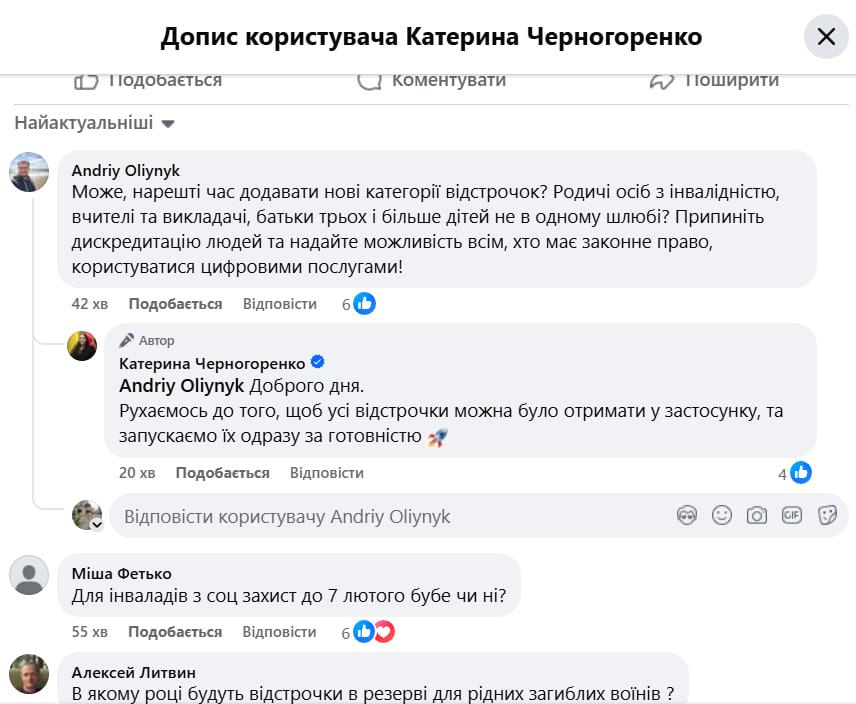 Як відомо, на початку січня в застосунку "Резерв+" запрацювала послуга відтермінування від мобілізації для багатодітних батьків. А те, що невдовзі її відновлять для студентів, раніше анонсувала Черногоренко.
