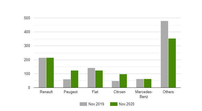 За інформацією організації, найпопулярнішими вантажними автомобілями за підсумками місяця стали авто французької марки Renault, яких на українському ринку продано 216 нових машин. Ця кількість відповідає кількості проданих автомобілів в 2019 році.