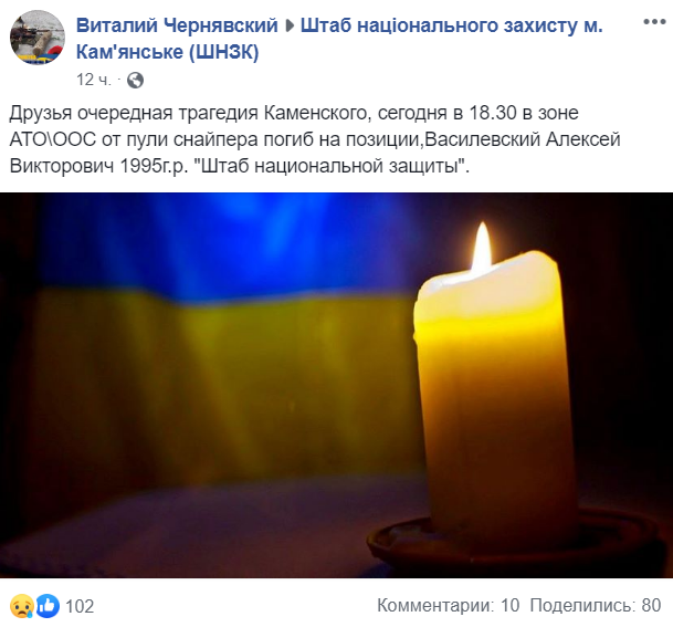 За його даними, трагедія сталася близько 18:30, боєць Збройних сил України (ЗСУ) загинув на позиції. Він був родом з Кам'янського Дніпропетровської області.
