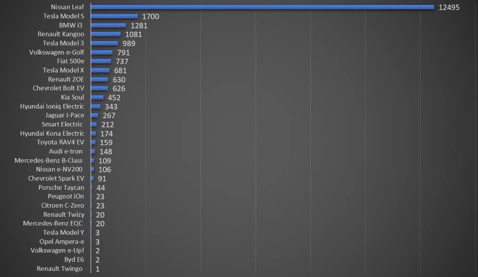 Перше місце в рейтингу покупок серед українців зайняв Nissan Leaf. У країні зареєстровано вже 12 495 таких транспортних засобів.