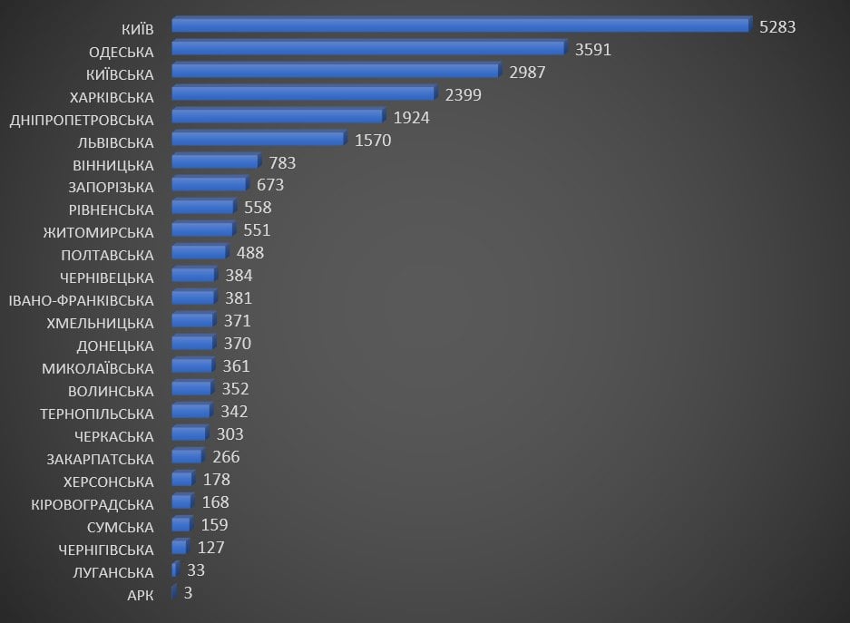 Найбільше електромобілів в Києві (5 283) і в області (2 399), а також в Одеській області (3 591).