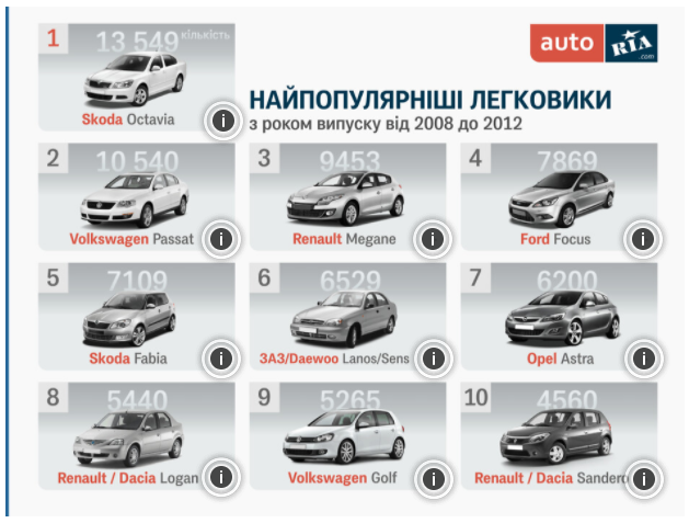 До слова, жоден із ВАЗів до рейтингу не потрапив на слайди, хоча зазвичай в оглядах "вторинки" декілька модель таки з'являються.