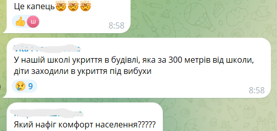 "Не в усіх школах є укриття в самих приміщеннях. Не у всіх садках є укриття в самих приміщеннях. Аналогічно про університети. Особливо у осінній період, коли сотні дітей потрібно одягти і вивести на вулицю".
