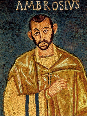 Святитель Амвросій навернув у християнство і хрестив святого Августина Аврелія. Амвросій мав сильний авторитет та вплив на політику візантійського імператора Феодосія Великого. Він не дозволив імператору увійти до храму після того, як той наказав вбити повстанців у Фесалонікі та змусив його покаятися і прийняти церковну покуту за свій злочин.