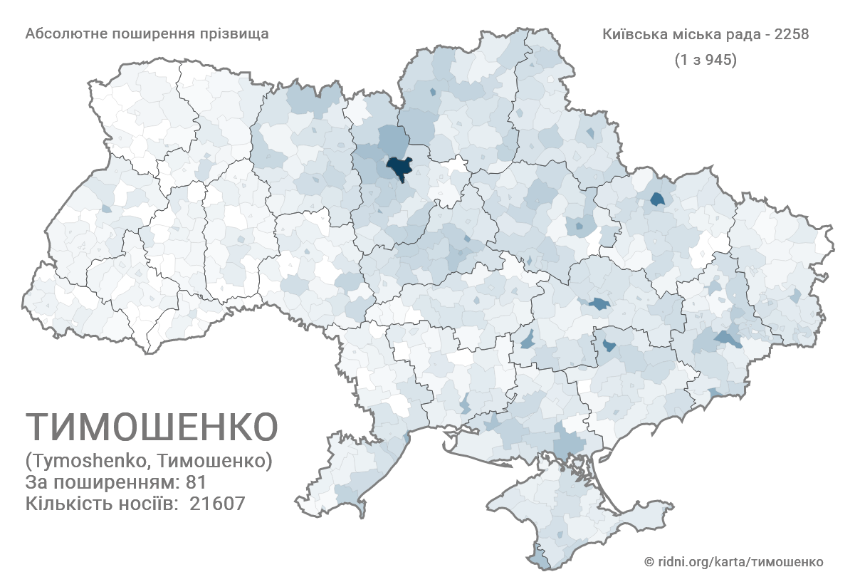 В Україні більшість українських прізвищ утворені за допомогою суфіксу "енко". Одне з таких - Тимошенко.