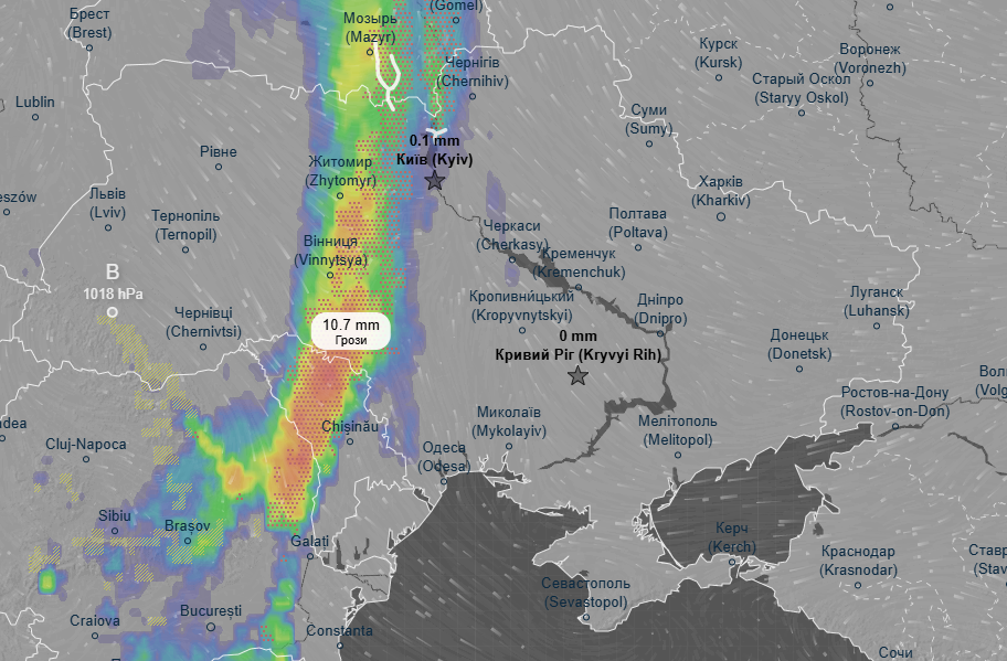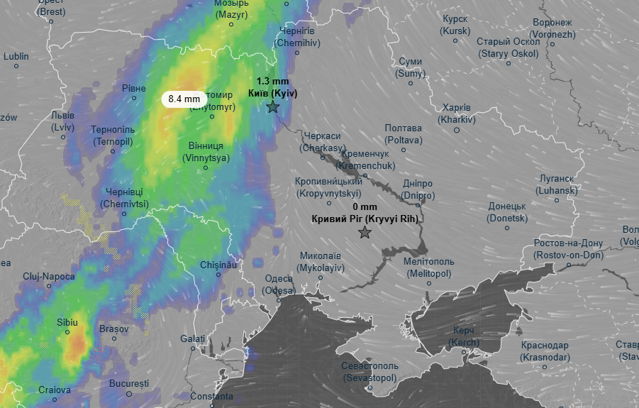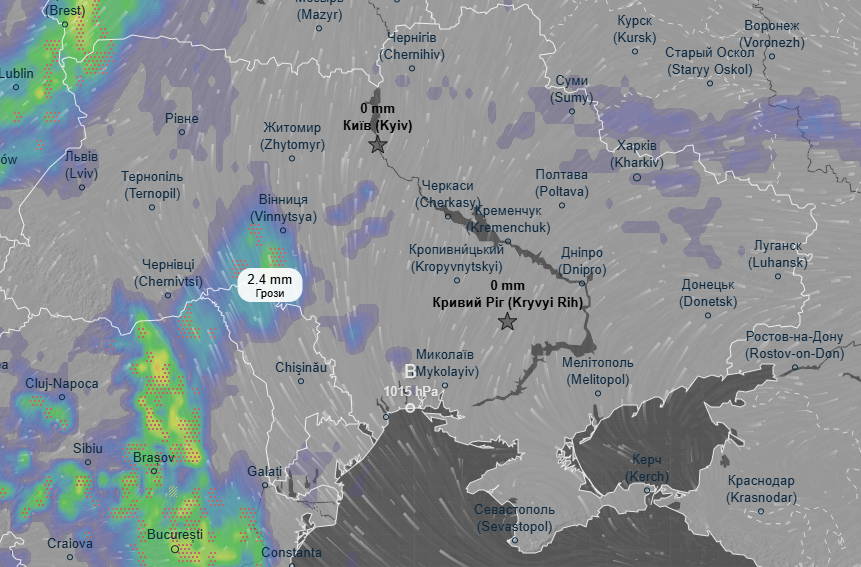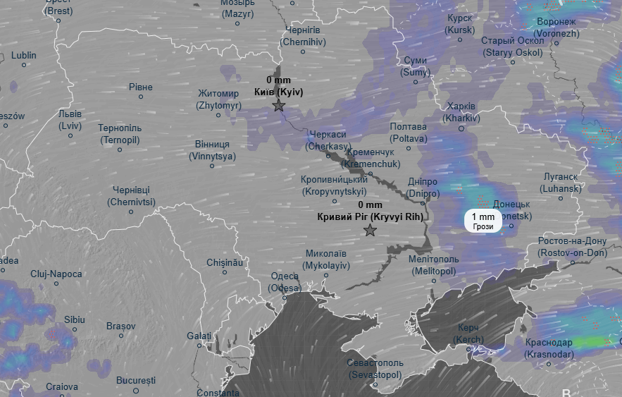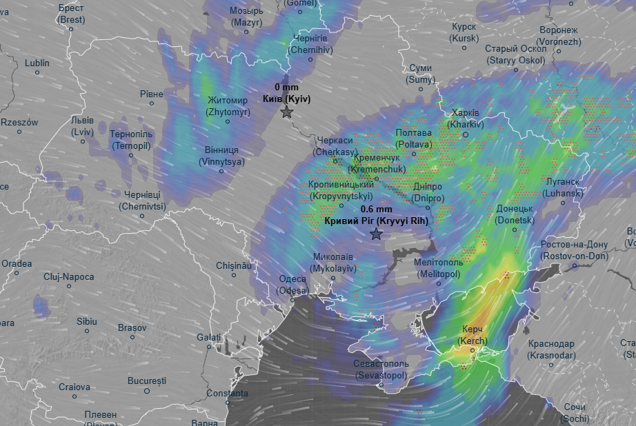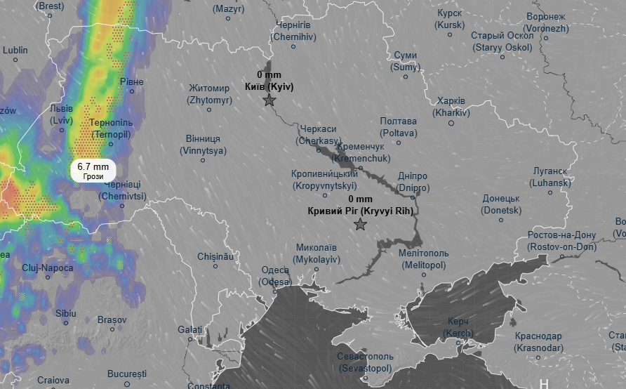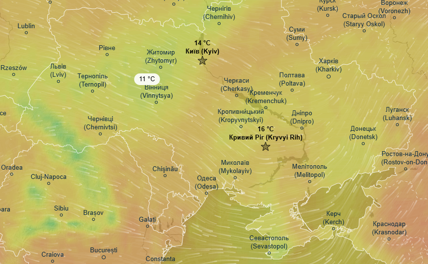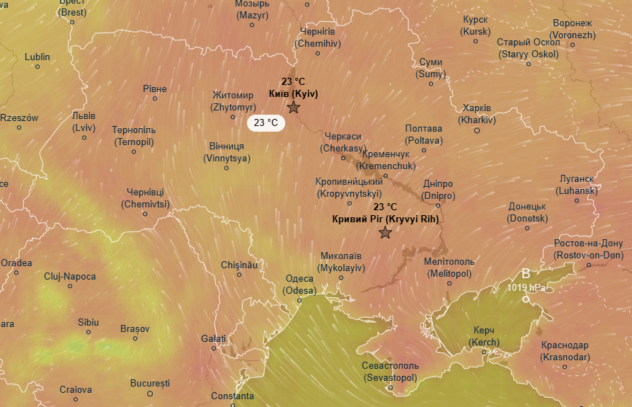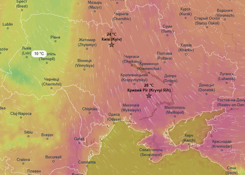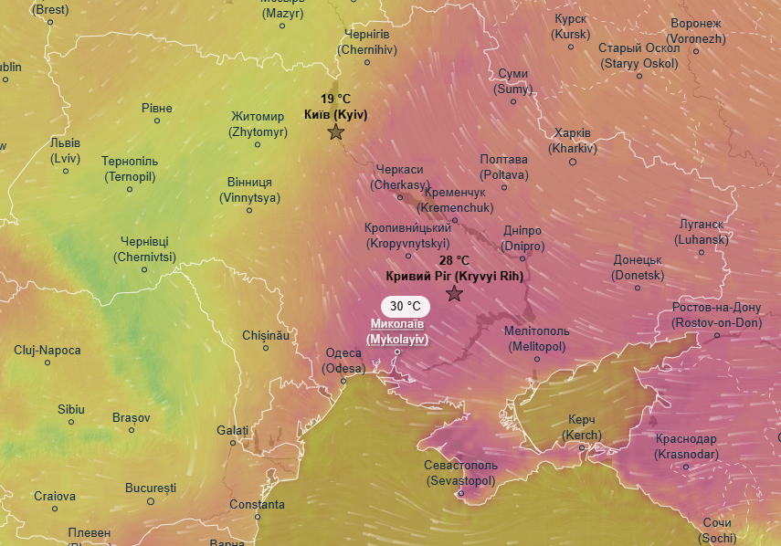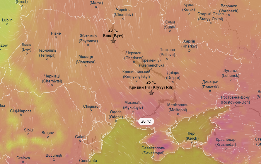Про це свідчать дані метеоресурса Ventusky.