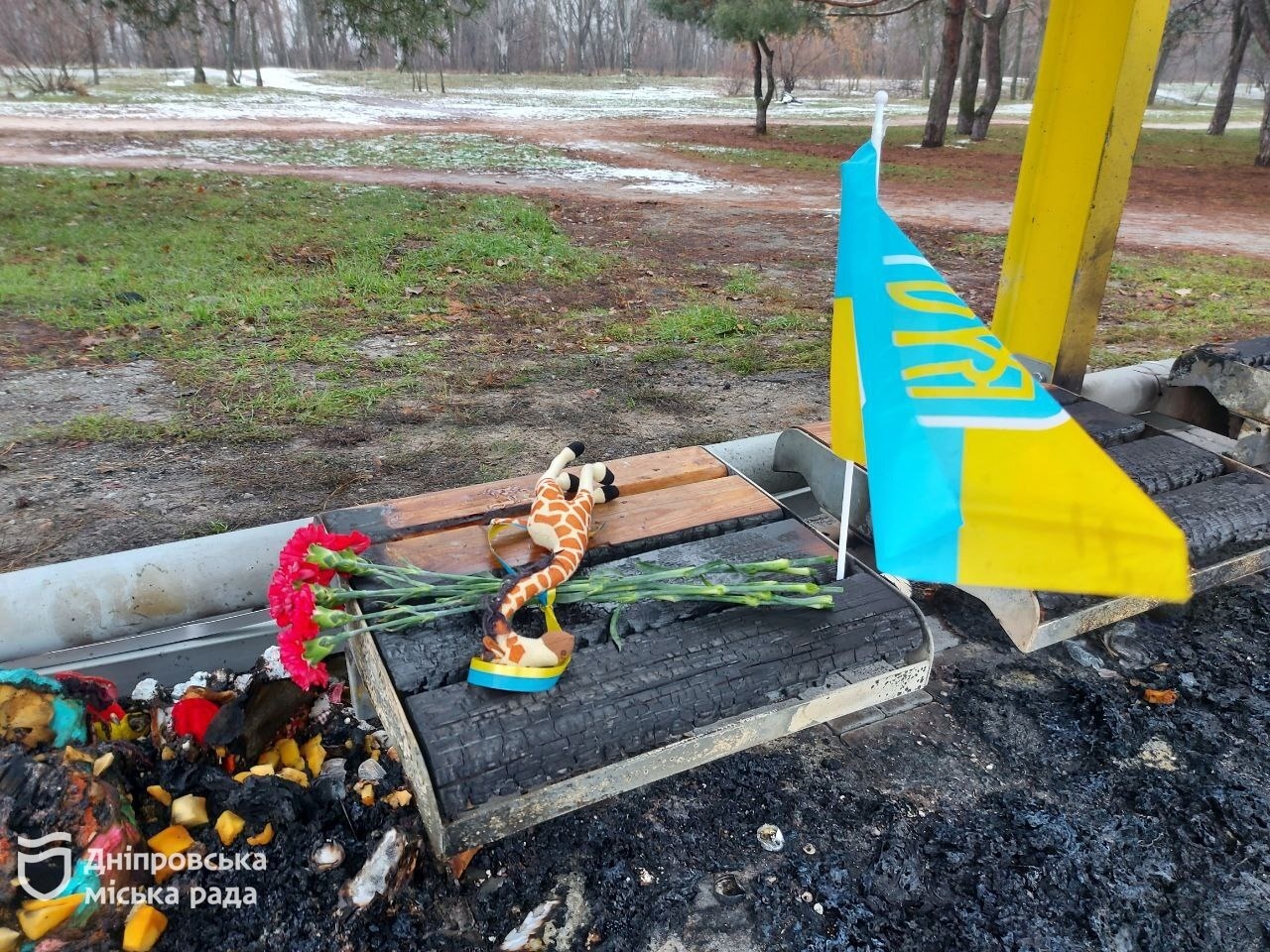 У ніч на 10 грудня у Дніпрі спалили меморіал в пам"ять загиблих від російського ракетного удару 14 січня, яким слугувала зупинка навпроти зруйнованого будинку. Поліція шукає зловмисників та відкрила кримінальне провадження.