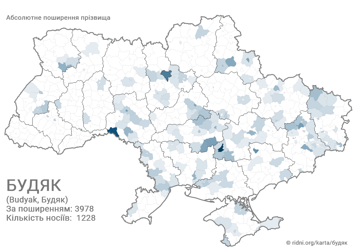 Прізвище Будяк налічує 1228 носіїв. За поширенням займає 3978 місце. Найчастіше зустрічається на Поділлі. Схожі прізвища - Будник, Буднік, Будяк, Будяк-Міллер.