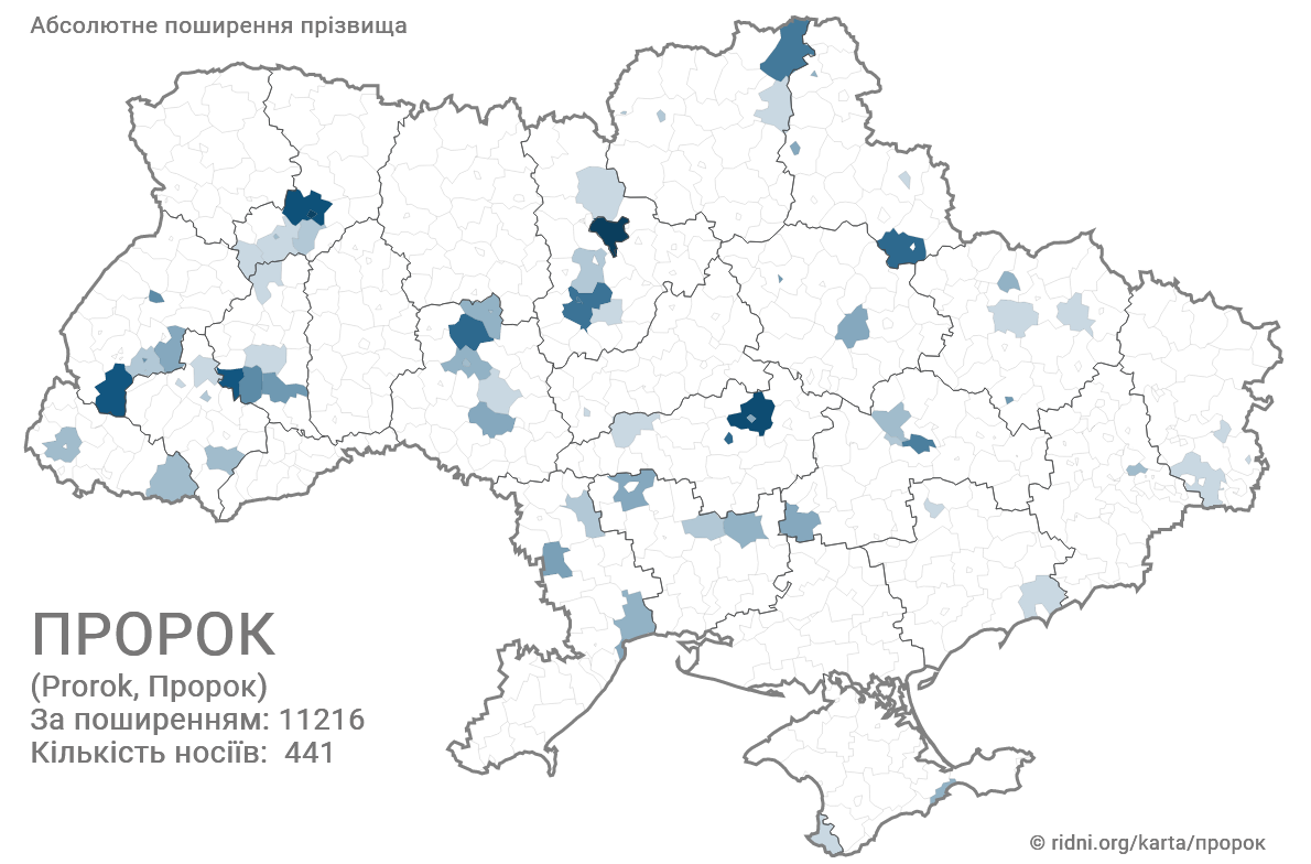 Зараз прізвище Пророк налічує 441 носіїв. За поширенням - на 11216 місці. Найчастіше зустрічається на Запорожжі. Подібні прізвища - Пророченко, Пророчук, Пророка, Пророкова, Пророков.