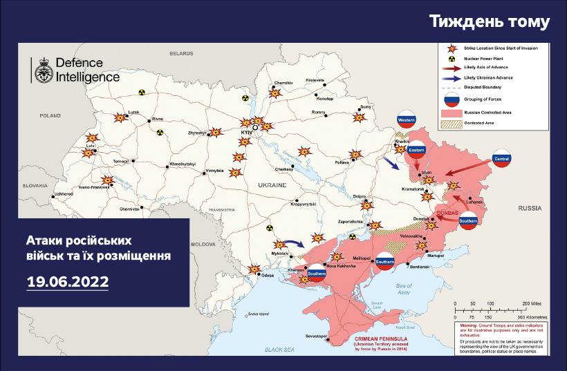 Тим часом у Мережі з'явилися карти з описом ситуації на фронті станом на 19 червня, тобто тиждень тому.