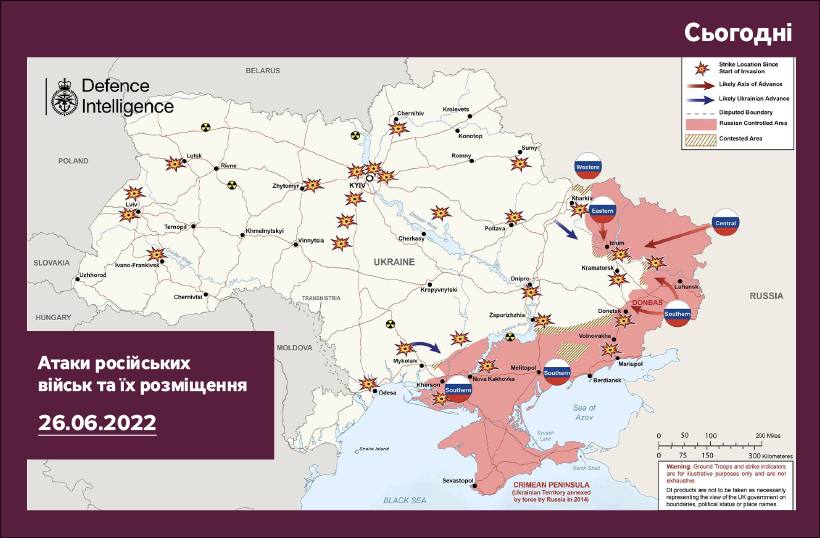У Мережі з'явилися карти боїв в Україні станом на 26 червня.