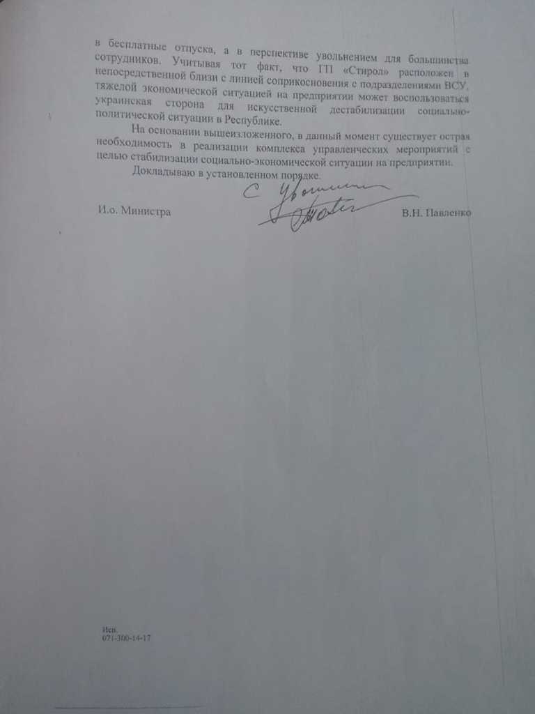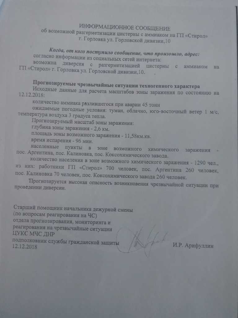 "РФ побудувало аналог Сомалі і в кроці від створення другого Чорнобиля. Не вірите? Ваше право. Тільки мені вдалося дістати документи по тому ж Стіролу, де чорним по білому написано: умови зберігання аміаку не відповідають вимогам безпеки. Читаємо уважно, окупаційна влада прекрасно інформовані про можливий витік аміаку і про кількість можливих жертв серед мирного населення", - підкреслив блогер.