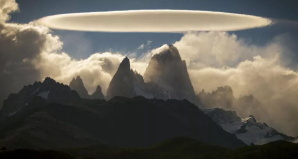 Над вершинами Ель-Шалтен на півдні Аргентини помітили моторошну хмару, яка вразила своєю формою і була схожа на НЛО. За словами вчених, це природне явище більш відоме в метеорологічних колах як стояча сочевична хмара.