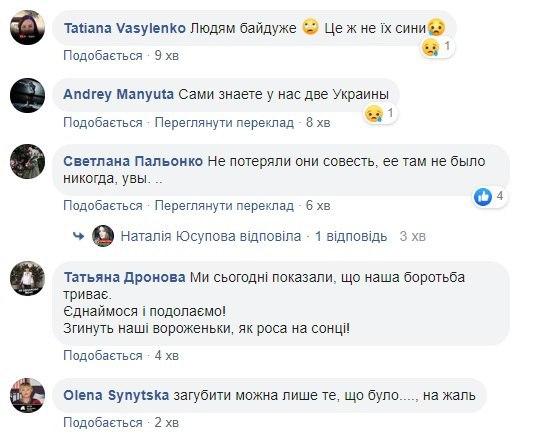 "Людям байдуже, це ж не їхні сини", "Самі знаєте, у нас дві України", "Що у наших людей в головах", - пишуть вони.
