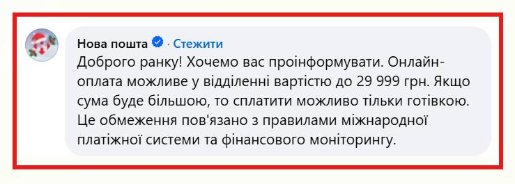 Водночас читачі Сергія Горбачова пояснюють обмеження онлайн-оплати у "Нової пошти" тим, що компанія гроші за замовлення продавцю проводить як p2p переказ.
