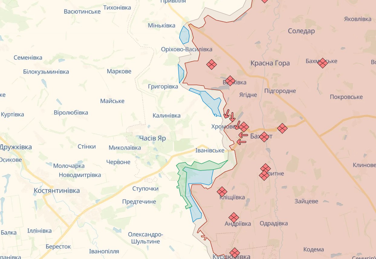 На Бахмутському напрямку протягом доби противник вів безуспішні наступальні дії у напрямку Предтечиного. Завдав авіаударів в районах Григорівки та Білої Гори. Від ворожих обстрілів постраждали Васюківка, Привілля, Оріхово-Василівка, Григорівка, Бахмут, Калинівка, Часів Яр, Іванівське, Ступочки, Предтечине, Костянтинівка, Біла Гора та Північне Донецької області.