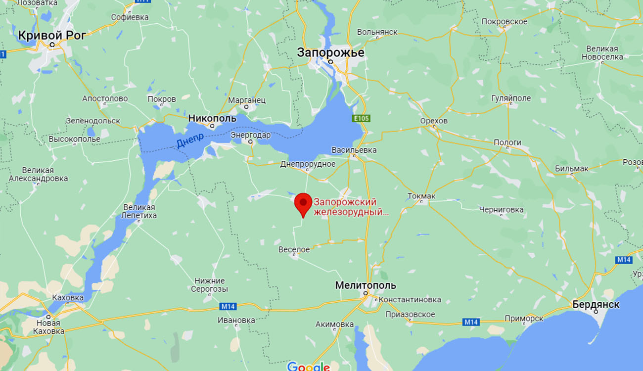 Запорізький залізнорудний комбінат розташований у селі Мала Білозерка Василівського району, на північний захід від Мелітополя.