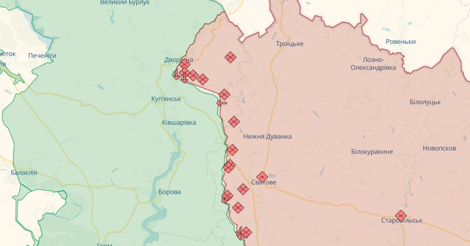 На Сіверському та Слобожанському напрямках противник зберігає військову присутність у прикордонних районах, проводить активну диверсійну діяльність з метою недопущення перекидання українських військ на загрозливі напрямки, нарощує щільність мінно-вибухових загороджень вздовж державного кордону в Бєлгородській області.