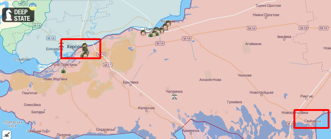 Варто зазначити, що відстань між Генічеськом та звільненим Херсоном по автомобільних дорогах становить понад 200 кілометрів.