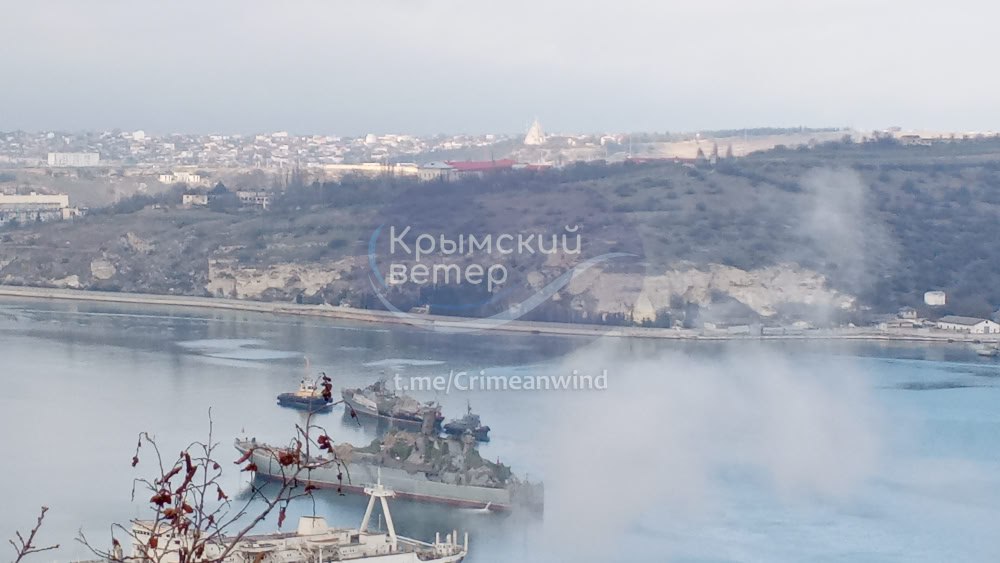 На каналі також повідомляють, що на якорі неподалік доків 13 судноремонтного заводу ЧФ РФ стоїть великий десантний корабель проекту 775.
