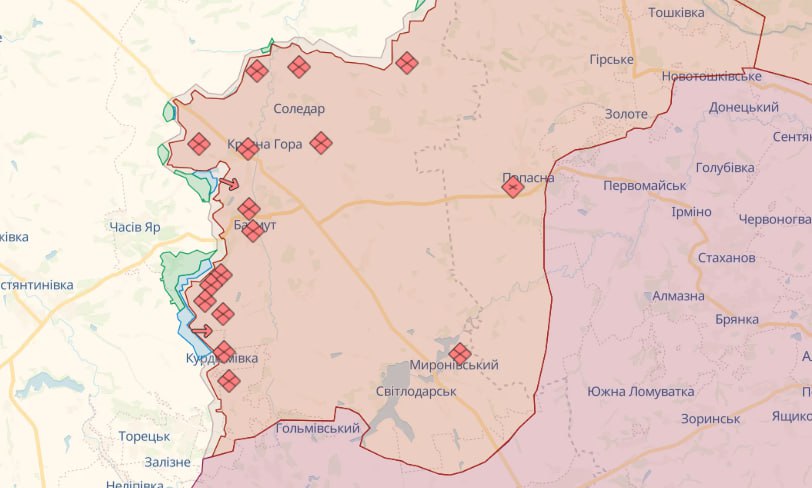 На Бахмутському напрямку противник вів безуспішні наступальні дії в районах Міньківки, Григорівки та Богданівки Донецької області. Завдав авіаційних ударів біля Хромового та Сухої Балки. Від ворожих артилерійських обстрілів постраждали Васюківка, Міньківка, Оріхово-Василівка, Богданівка, Часів Яр, Іванівське, Озарянівка та Нью-Йорк на Донеччині.