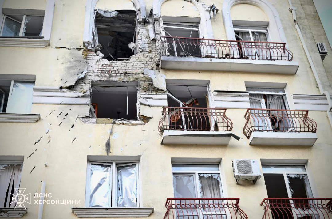 Зокрема в одному з багатоквартирних будинків Херсона через влучання боєприпасу спалахнув дах. Зруйнована квартира.