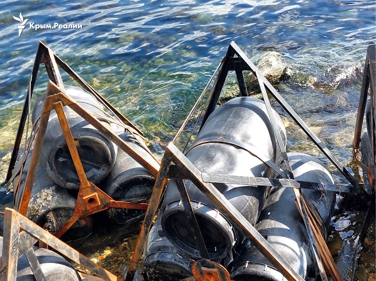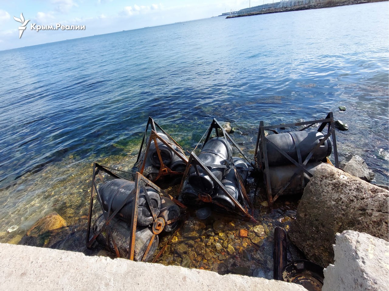 У тимчасово окупованому Криму біля Керченського мосту до берега винесло нову партію бонових загороджень, які були встановлені для захисту від атак морських безпілотників.
