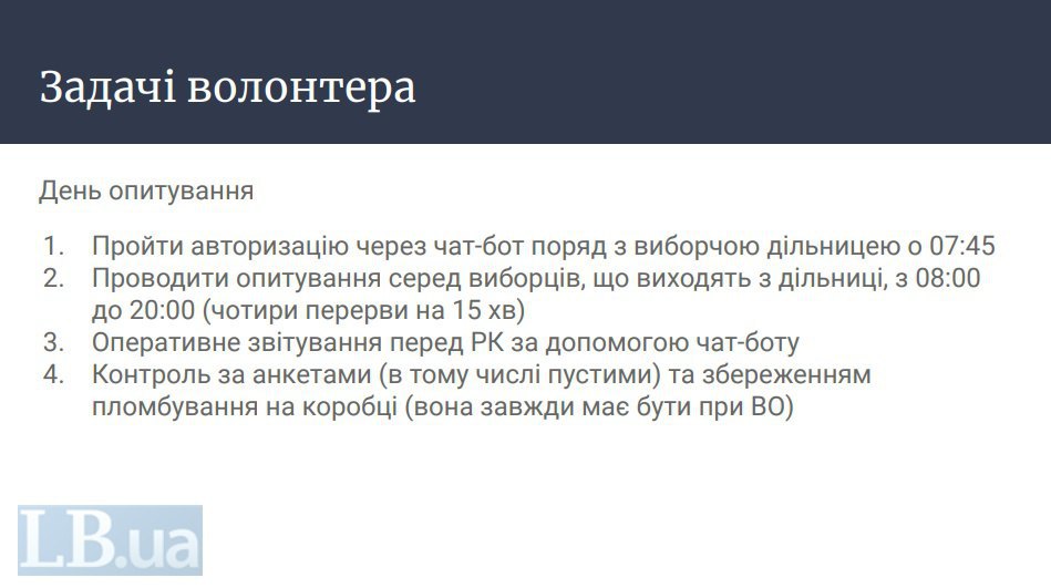 Виявилось, що опитування проводить волонтер, який стоятиме біля виборчої дільниці, він пропонує пройти опитування людям, які виходять із приміщення після голосування.