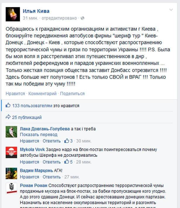 "Як тут не згадати, що саме Ківа обіцяв свого часу розстрілювати автобуси з прихильниками сепаратистів. ОПЗЖ ще потім тролив цією фразою на виборах, розміщуючи її на бордах. Є версія, що це сам Ківа нарешті і здійснив давно задумане", - заявив Казанський.