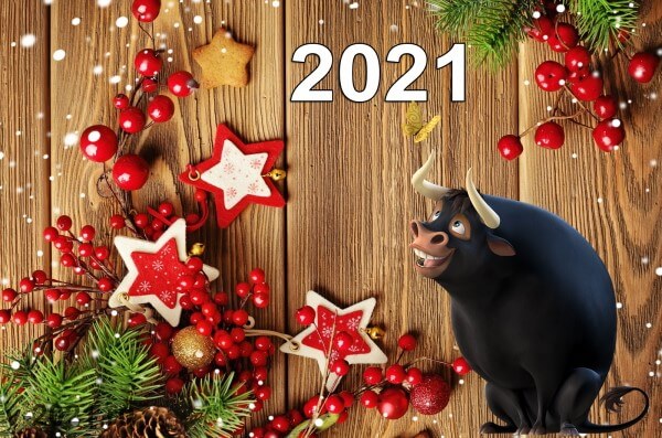 З Новим роком! Бажаю, щоб найкращою прикрасою 2021 року були очікування успіху і щастя, що неодмінно справджувалися б! Нехай символ нового року - Білий Бик - буде лагіднішим та добрішим, ніж попередній Щурик і привнесе у життя лише прекрасні миті! Нехай прийдешній рік виконає усі ваші бажання, справдить усі мрії та сподівання! Міцного здоров"я, радості кожного дня, добробуту та затишку у родині!