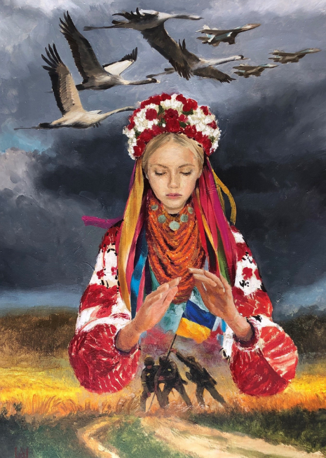 Опис роботи: поєднання двох образів: жінки, як образу України, та лелеки – символу любові до батьків та рідної землі, вірності;