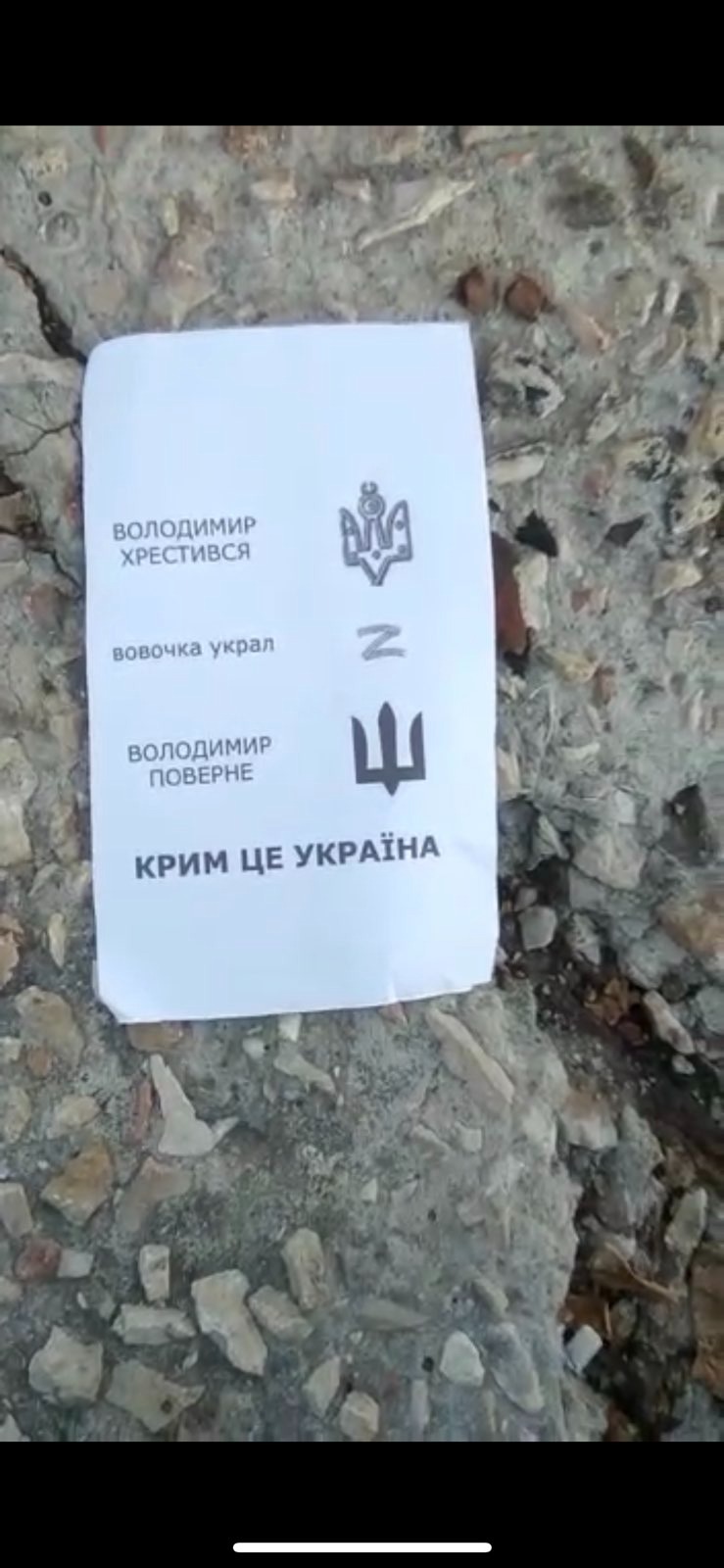 На ролику видно листівки, на яких написані імена трьох Володимирів – йдеться про Володимира Великого, Хрестителя Русі, вовочку – російського агресора та Володимира Зеленського – чинного президента України. Повідомляється, що саме вовочка вкрав острів, але вже скоро все стане на свої місця, адже Крим – це Україна.