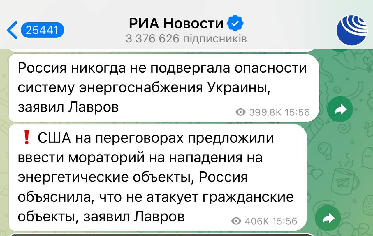 Про це повідомив у своєму Telegram із посиланням на заяву Лаврова.
