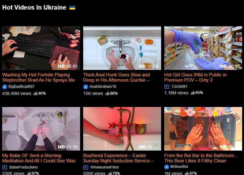 Відзначимо, що назви роликів залишилися традиційними, наприклад: "Безневинні першокурсниці роблять це вперше на камеру" і "Цей хлопець любить робити це брудно. На такий хардкор не погодилася б навіть Саша Грей".