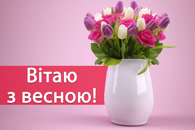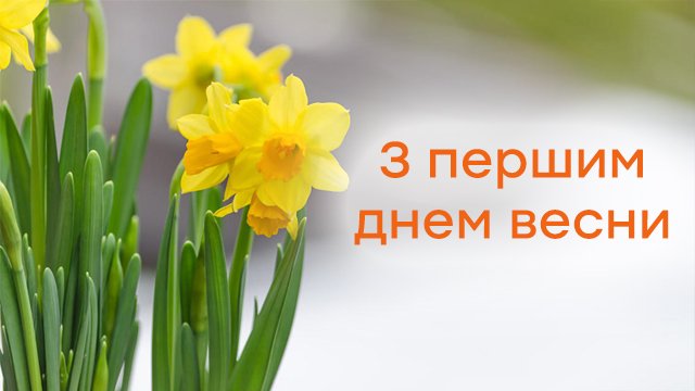 Вітаємо з початком весни, нехай це стане часом змін, світлих емоцій і свіжих почуттів! Бажаємо зустріти нову пору року бадьорими, енергійними, і радісно дивитися в майбутнє.